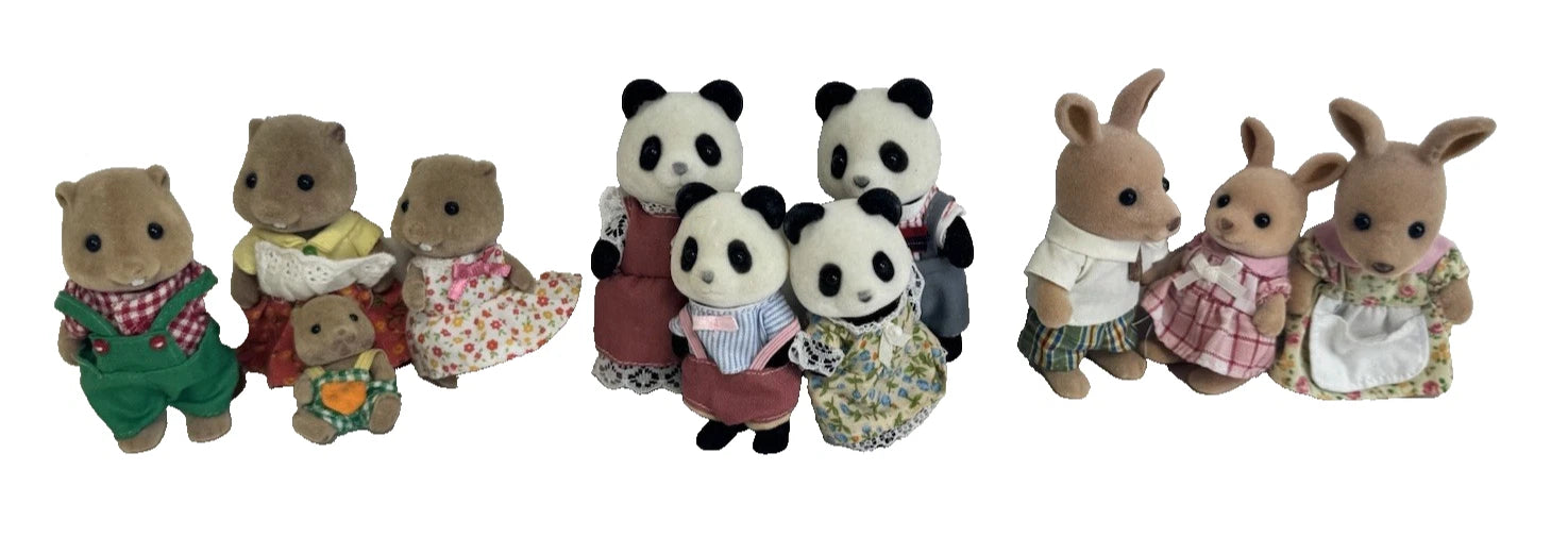 Sylvanian Families 11pc Bundle X3 Families Beaver, Panda, Rabbit